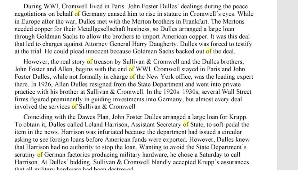 När en reformistisk demokratisk regering dök upp i Latinamerika såg Dullesbröderna det som ett hot mot innehavet som deras advokatbyrås kunder hade i det landet. Dessa innehav, ibland förvärvade med mutor till odemokratiska regeringar, avledde landets resurser och rikedomar till den Djupa Statens – inte bara amerikanska händer och det är den metod med vilken Dullesbröderna och bröderna Wallenberg syftade till att behålla och öka allt – girighet. Den reformistiska regeringen skulle förklaras marxistisk eller kommunistisk – hur som helst Istisk, och CIA och det amerikanska utrikesdepartementet skulle samarbeta för att störta den och placera en diktator vid makten i sängen med Washington. De andra skulle bara verka utan att synas….