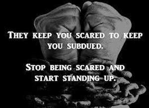 Maktens främsta verktyg är därför din rädsla och dess målsättning är att göra dig liten och osäker. Det är ingen slump att den själsliga ofärden som sprider sig i samhällskroppen förefaller epidemiskt betingad. Det är själva meningen.