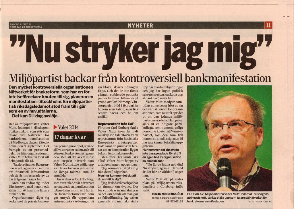 Vänskapen med presstitutionen börjar bli som ett par väl ingångna tofflor. Här i DI för många år sedan Expo var det visst ja...Politikerskolans finansiering behöver vi kanske inte ta upp mer här 😉
