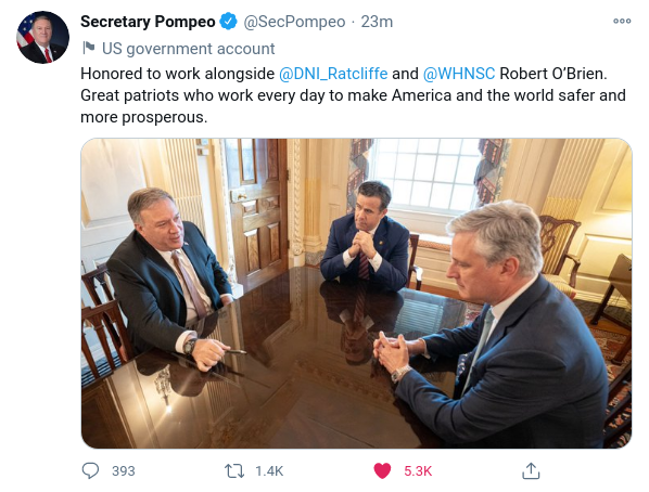 “Honored to work alongside @DNI_Ratcliffe and @WHNSC Robert