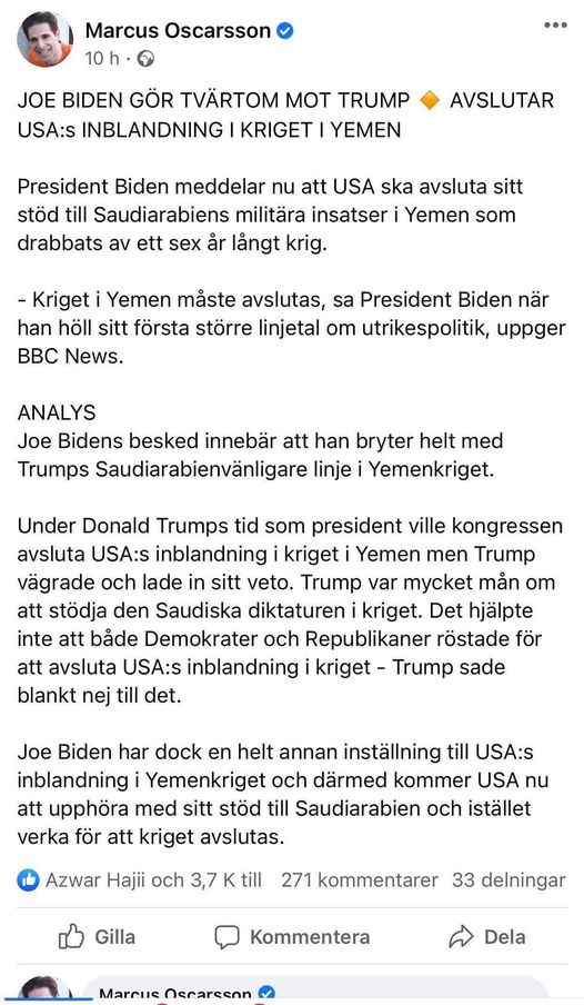 Stackars Marcus, för vad sitter i förlängningen på detta - jo fred, den Djupa Statens undergång i Mellanöstern och återuppståndelse av Pan Arabismen från före att Saudi blev ett kolonialväldesprojekt i sekterismens tecken:-)