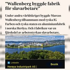 Under andra världskriget byggde Marcus Wallenberg tillsammans med tyska IG Farben och tyska staten en aluminiumfabrik i norska Heröya. Och i fabriken var en fjärdedel av arbetsstyrkan slavarbetare, visar ny forskning som TV8:s Finansnytt tagit del av.