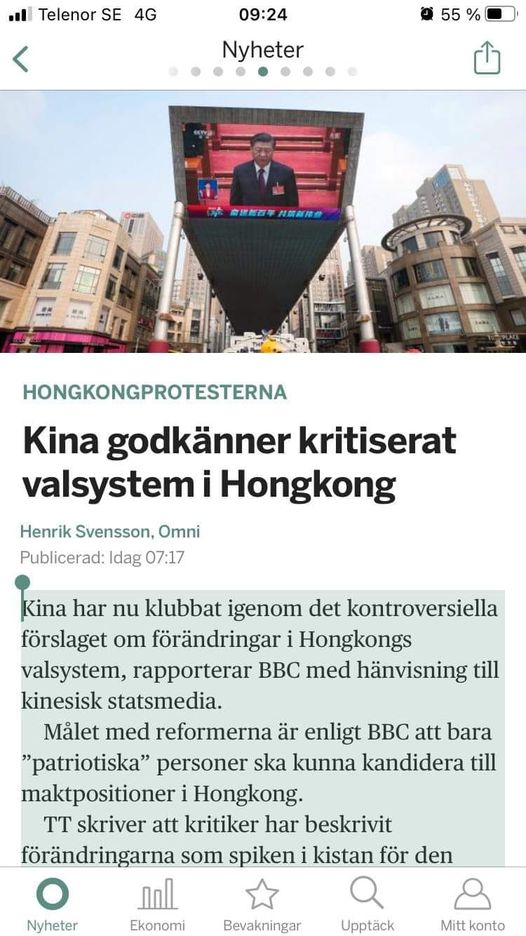 Mooaahaha Va! Finns det fler valsystem!!! Kina har nu klubbat igenom det kontroversiella förslaget om förändringar i Hongkongs valsystem, rapporterar BBC med hänvisning till kinesisk statsmedia. Målet med reformerna är enligt BBC att bara ”patriotiska” personer ska kunna kandidera till maktpositioner i Hongkong. TT skriver att kritiker har beskrivit förändringarna som spiken i kistan för den tidigare brittiskkontrollerade regionens demokratirörelse. Enligt South China Morning Post röstades förslaget igenom med siffrorna 167–0.