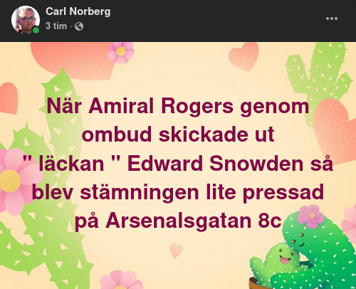 Det höjde insatserna i Syrienprojektet bortom den Djupa Statens förmåga. Frågan är nära nog om inte Keith Alexander spelade upp för exponeringen av FRA i sig.. Ingvar Åkesson var ju redan sedan länge arg på mig Det var dålig stämning redan vid tiden för när Piratpartiet hade nämndemän (CB) på rotel 41 vid Stockholms Tingsrätt med Alan Camitz och den närmast Kafkaliknande personsammansättning som utgjorde den totala juridiska sammansvetsade representationen, när helst den politiska signifikansen så krävde. Ett spektakel utan dess like. Om befolkningen sett vad så många har sett gällande det svenska rättssystemets natur och karaktär... och CB började läcka från insidan - det var inte så populärt... Det faktiskt tragikomiska här och nu, är att denna länk hittade jag först idag när jag skulle dubbelkolla hur idioten stavade namnet och jag kan väl säga att jag har även haft flera anställda som blivit dömda, där Camitz exempelvis åberopar rättsläkarintygets skrivning, som ovillkorligen uttrycker det omvända mot det uttryckta efterkommande domskälet. Bodström, Borgström och Blidberg kände alla direkt till betydelsen av Robert OBriens besök i Sverige. De var inte de enda. https://allancamitzochhansvredesutbrott.blogspot.com/...