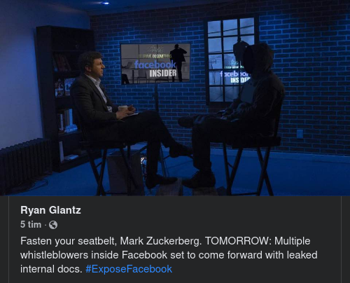 Ryan Glantz 5 tim · Fasten your seatbelt, Mark Zuckerberg. TOMORROW: Multiple whistleblowers inside Facebook set to come forward with leaked internal docs. #ExposeFacebook Spänn fast säkerhetsbältet, Mark Zuckerberg. IMORGON: Flera visselblåsare på Facebook som kommer fram med läckta interna dokument. #ExposeFacebook