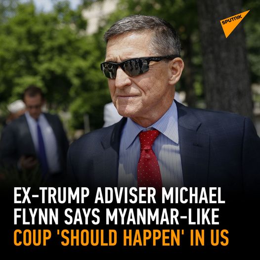 Sputnik Statskontrollerad media från Ryssland · 1 juni kl. 01:40 · Can a Myanmar-like military coup happen in the US? Well, ccording to ex-Trump adviser Michael Flynn it "SHOULD" Kan en Myanmar-liknande militärkupp ske i USA? Tja, ccording till före detta Trump-rådgivare Michael Flynn det ′′ BÖR ′′