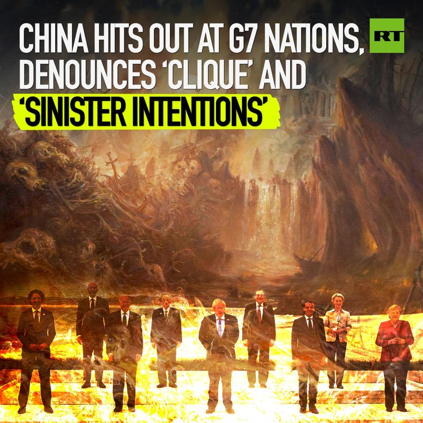 RT Statskontrollerad media från Ryssland · 7 tim · The G7 club prides itself on improving international relations. But things can’t be going to plan if it’s managed to get on the wrong side of the world’s largest trade partner. And that’s exactly what’s happened, after the Chinese Embassy in London hit out at the group with some pretty stern words. In a statement, China claimed the bloc’s call for Beijing to respect human rights was a ‘serious violation of the basic norms of international relations.’ China underlined its ‘strong dissatisfaction,’ and added that the group’s most recent summit highlighted the ‘sinister intentions’ of certain countries – such as the United States. The G7 nations took a firm stand on China over alleged human rights abuses in the Xinjiang region and the crackdown on pro-democracy movements in Hong Kong. But Beijing has vowed to ‘resolutely counter all kinds of injustices and infringements imposed on China.’ MORE: https://on.rt.com/ba93 G8-klubben är stolt över att förbättra internationella relationer. Men saker och ting kan inte vara på väg att planera om det har lyckats hamna på fel sida av världens största handelspartner. Och det är exakt vad som har hänt, efter att kinesiska ambassaden i London slog ut i gruppen med några ganska stränga ord. I ett uttalande hävdade Kina att blockets uppmaning till Peking att respektera mänskliga rättigheter var ett ′′ allvarligt brott mot de grundläggande normerna för internationella relationer. ′′ Kina betonade sitt ′′ starka missnöje och lade till att gruppens senaste toppmöte lyfte fram de ′′ ondskefulla avsikterna ′′ i vissa länder - exempelvis USA. G8-nationerna tog ett fast ställningstagande om Kina över påstådda kränkningar av mänskliga rättigheter i Xinjiang-regionen och tillslaget mot demokratirörelser i Hongkong. Men Peking har svurit att ′′ resolut motverka alla möjliga orättvisor och överträdelser som ålagts Kina. ′′ MER: https://on.rt.com/ba93