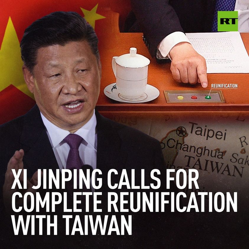 RT Statskontrollerad media från Ryssland · 6 tim · Chinese leader Xi Jinping urged his compatriots to ‘smash’ any attempts at independence from Taipei, calling for ‘reunification’ with the island in his address marking the 100th anniversary of the ruling Communist Party. Speaking on the issue of Taiwan, which has become a bone of contention between Beijing and Washington, with the latter routinely sending warships into the sensitive waters of the Taiwan Strait, Xi called ‘the complete reunification of the motherland’ one of the most pressing challenges Beijing faces. ‘Solving the Taiwan question and realizing the complete reunification of the motherland are the unswerving historical tasks of the Chinese Communist Party and the common aspiration of all Chinese people.’ Xi added that the endeavor would require people in mainland China and Taiwan to pool their efforts and ‘move forward in solidarity, resolutely smashing any “Taiwan independence” plots.’ MORE: https://on.rt.com/bbga