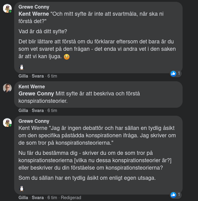 Grewe Conny 22 tim · Ur en tråd med Kenspirationismens Härförare. --------------------------------------------- Kent Werne "Jag är ingen debattör och har sällan en tydlig åsikt om den specifika påstådda konspirationen ifråga. Jag skriver om de som tror på konspirationsteorierna."
