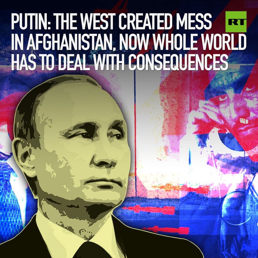 RT Statskontrollerad media från Ryssland · 12 tim · Russian President Vladimir Putin has spoken out on the current situation in Afghanistan, and pointed the finger at the western nations who created the mess in the first place. ‘I have said many times that the current crisis in Afghanistan is a direct consequence of irresponsible attempts to impose alien values from outside and the desire to build so-called democratic structures by political engineering, which takes into account neither historical nor national characteristics of other nations’, Putin said. MORE: https://on.rt.com/bgc9