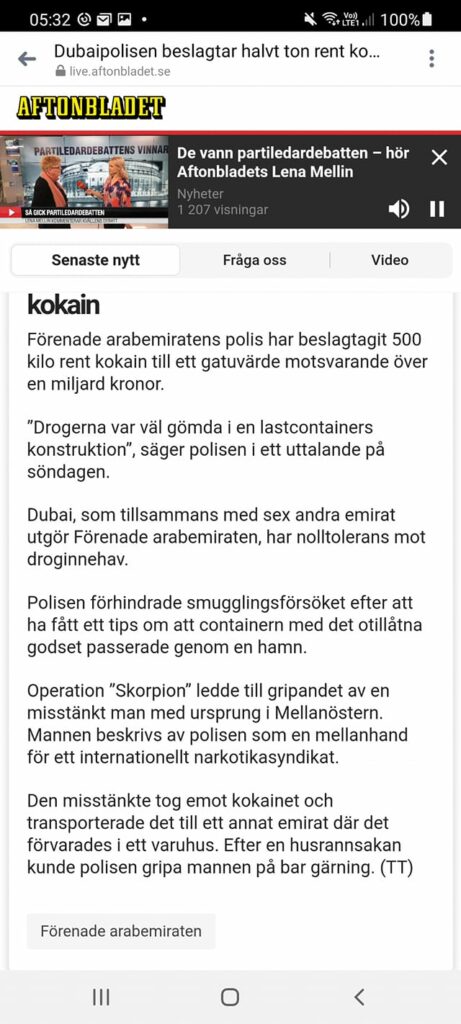 Ett Halvt Ton Kokain Beslagtaget Av Dubaipolisen