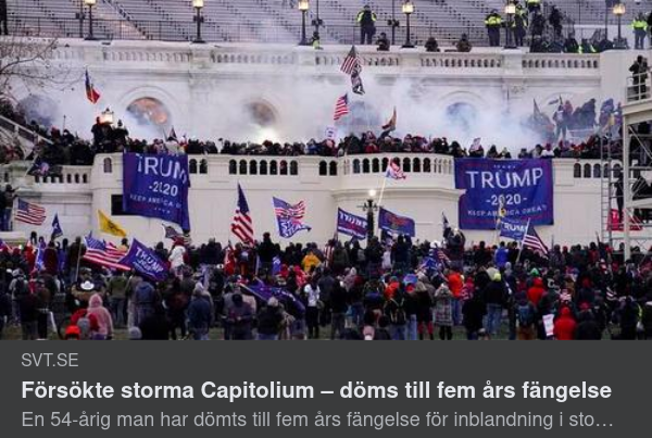 https://www.svt.se/nyheter/utrikes/forsokte-storma-kapitolium-doms-till-fem-ars-fangelse?fbclid=IwAR2dX_VL2LwrIz6NPdhkCx1_JmIgXqRrNLM5YZd08inXLPHTBSBmUWeNEqA