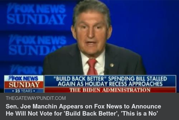 https://www.thegatewaypundit.com/2021/12/sen-joe-manchin-appears-fox-news-announce-not-vote-build-back-better-no/?utm_source=Facebook&utm_medium=PostSideSharingButtons&utm_campaign=websitesharingbuttons&fbclid=IwAR1GjahsZbc1ahGLUZeOxOOORtbBlccMeee0tIqhQHzmbmUWCK4tkUTBLkI