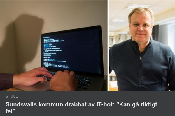 Vilket oflyt till jul ............................. " Ett 15-tal personer på Sundsvalls kommuns IT-avdelning har under den gångna veckan arbetat med att avvärja säkerhetshotet. Det handlar om en allvarlig säkerhetsrisk i ett java-bibliotek som används för loggning i miljontals applikationer och andra tjänster i kommunen, och hos många av dess leverantörer. – Det är en ganska liten komponent men den finns i ganska mycket infrastruktur inom IT och i alla möjliga tjänster. Eftersom det är så pass frekvent använt är risken för påverkan stor, säger Håkan Simonsson. Är ni hotade? – Nej, vad vi vet så är vi inte det. Däremot så ser vi i våra brandväggar att man har gjort väldigt stora försök att utnyttja sårbarheten. Informationen om säkerhetshålet kom från MSB (Myndigheten för samhällsskydd och beredskap) under lördagen. – Vi kände till det sporadiskt från i fredags förra veckan. Tidigt på måndagen satt jag med min personal som normalt hanterar det här, säger Håkan Simonsson. Under torsdagen kom nyheten om att Kalix kommun utsatts för en stor IT-attack. Bland annat slogs kommunens mejlfunktion och betalningssystem ut. Håkan Simonsson konstaterar att följderna skulle ha blivit stora om säkerhetshålet utnyttjats. – Det är en presumtiv stor incident. Det hade kunnat, och kan gå riktigt fel. Vi fick reda på det ungefär samtidigt som angriparna fick reda på det. Det som skett i Kalix är nog det värsta som ytterst hade kunnat hända. Håkan Simonsson jämför hotets allvarlighetsgrad med millenniebuggen, som det varnades för inför år 2000. Det handlade i korthet om att en del av datorerna på den tiden använde två tecken istället för fyra för att beräkna årtal. När 1999 blev år 2000 var oron att datorerna skulle tolka det nya året som 1900 istället för 2000, och därmed orsaka IT-haverier med ett hopp bakåt i tiden. – Skillnaden då var att vi hade betydligt längre tid på oss, säger Håkan Simonsson. IT-avdelningen kommer fortsätta att jobba med att täppa till hålet under helgen. – Det kan vara så att vi behöver vidta åtgärder för att stänga ned saker. Vi kommer att fortsätta arbetet med det här ett tag framöver. Men det går inte att säga hur länge i dagsläget. Det beror på vad vi hittar, säger Håkan Simonsson."