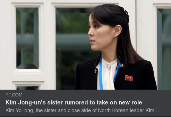 Är det då möjligen även rentav lite misogynt att tillskriva henne samma diktatoriska galenskap som sin bror ............................................................ " Kim Yo-jong, syster och nära medhjälpare till Nordkoreas ledare Kim Jong-un, kan ha stigit ytterligare i partihierarkin, att döma av hennes behandling i statliga medier under hennes senaste offentliga framträdande. När den koreanska centrala nyhetsbyrån (KCNA) täckte förra veckans minnesgudstjänst för maktsyskonens far, Kim Jong-il, namngav den koreanska centrala nyhetsbyrån Kim Yo-jong tillsammans med medlemmar av den politiska byrån i det regerande arbetarpartiets centralkommitté. Hon nämndes tillsammans med de sittande medlemmarna och suppleanterna i politbyrån, partiets politiska organ som håller flera möten varje år. Kim Jong-il visades också stå närmare sin bror än väntat på Kumsusan Palace of the Sun under den högtidliga fredagsceremonin som markerar 10 år sedan Kim Jong-ils död. Vissa Nordkorea-bevakare föreslog att det kan tyda på en befordran till en suppleant i politbyrån, eller åtminstone en förändring i den relativa makten för partitjänstemän."