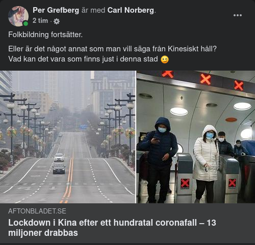 https://www.aftonbladet.se/nyheter/a/g6yQbq/total-lockdown-i-xian--efter-ett-hundratal-coronafall?fbclid=IwAR07A_08CSNxzdIZsfrd7ZupVHtzJppULwvFqVA0y6MRIKzbJY5mzF2Q9Zg