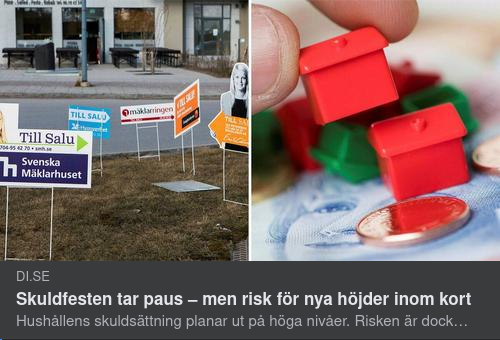 När Presstitutionen nu alltjämt principiellt indirekt talar om en skuldminskning som möjlig annat än genom skuldavskrivning, ja då vet vi vad klockan är slagen för landet. .................................................. " Hushållen lånade i november 6,6 procent mer än i november i fjol. Det innebar en oförändrad ökningstakt jämfört med i oktober efter en lång period av accelererande skuldsättning, månad för månad. Utplaningen är logisk efter att det värsta pandemirallyt i bostadspriserna bromsat in sedan halvårsskiftet. Under perioden september-november steg bostadsprisindex blygsamt med en halv procent enligt Valueguard, även om bostadsrätter i Stockholm var betydligt hetare än så. Det är ett glädjande besked om coronafebern för bostadspriser och -lån har toppat. Drygt åtta av tio nya skuldkronor utgörs av bostadslån. I kronor räknat har hushållens skuldberg växt med drygt 4.700 miljarder på ett år. Den ökade aptiten på flytt till större bostad är upp till var och en. Men exempelvis Finansinspektionen i sin senaste stabilitetsrapport varnar för att stora grupper bolåntagare under pandemin budat loss med lövtunna marginaler inför en oväntad marknadschock. Och frågan är om utplaningen snarare är en andhämtning snarare än en topp. Tillväxten i antalet bostadsaffärer har kommit ned från vårens rekordnotering, men är fortsatt klart högre än före pandemin. Prislyften har gett bostadsbyggare eld i baken och nyproduktionen går för högtryck. I takt med att en våg av nybyggda bostäder når marknaden ger det skuldsättningen nya impulser. Handelsbanken noterade också nyligen att på den nyproducerade marknaden har genomsnittliga slutpriser sedan i somras klättrat markant över annonspriser. Det är första gången sedan åtminstone 2013, vilket är perioden som underlaget från bostadsdatatjänsten Booli visar. Tisdagens lånestatistik från SCB bjöd också på en historisk notering. Snitträntan för nya rörliga bolån i november var den lägsta sedan mätningarna började 2005: 1,38 procent. Allt annat lika stärker det bolåntagarnas köpkraft och speglar förbättrad konkurrens på bolånemarknaden. Men kom ihåg att även om Riksbankens bästa prognos pekar mot styrränta noll till hösten 2024, är världens centralbanker rörande eniga om att räntorna bara går åt ett håll härifrån: uppåt."