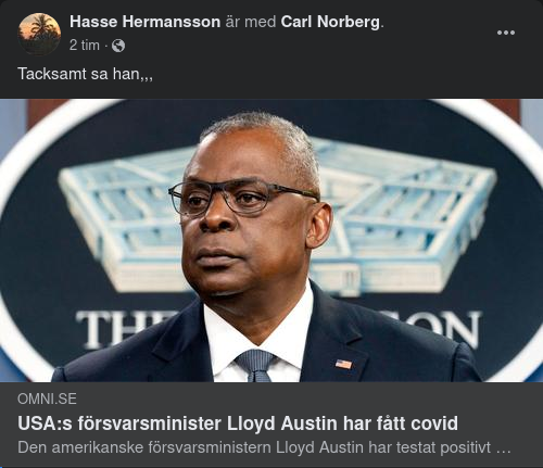 Den amerikanske försvarsministern Lloyd Austin har testat positivt för covid, skriver han i ett Twitterinlägg.