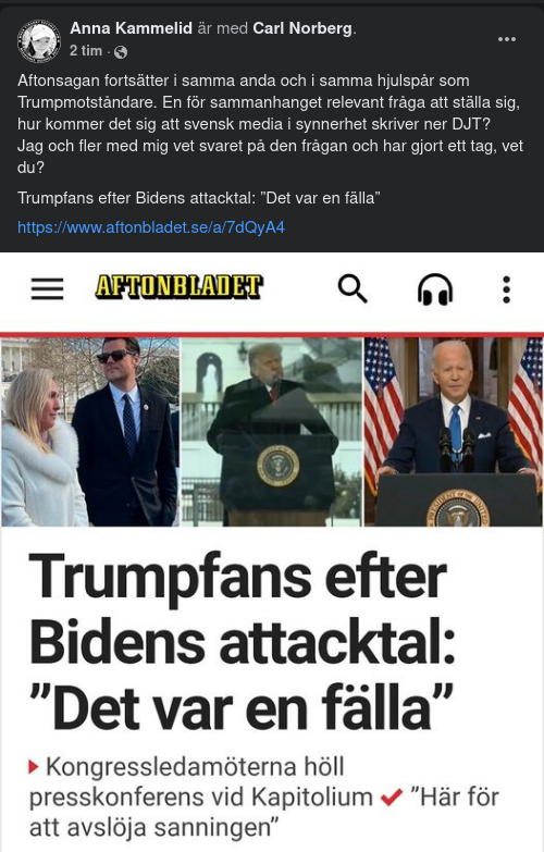 – Demokraterna försöker lägga skulden på Trumpsupportrar. Men det kan ha varit andra som låg bakom – som uppviglade, fortsatte han.