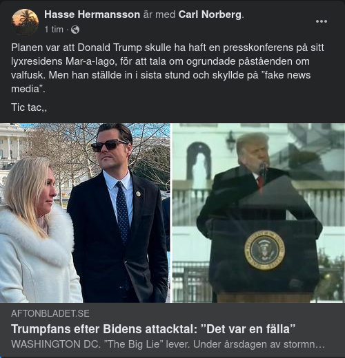 Planen var att Donald Trump skulle ha haft en presskonferens på sitt lyxresidens Mar-a-lago, för att tala om ogrundade påståenden om valfusk. Men han ställde in i sista stund och skyllde på ”fake news media”.