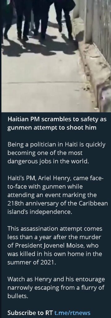 Haitis premiärminister, Ariel Henry, mötte beväpnade män när han deltog i ett evenemang som markerar 218-årsdagen av den karibiska öns självständighet.