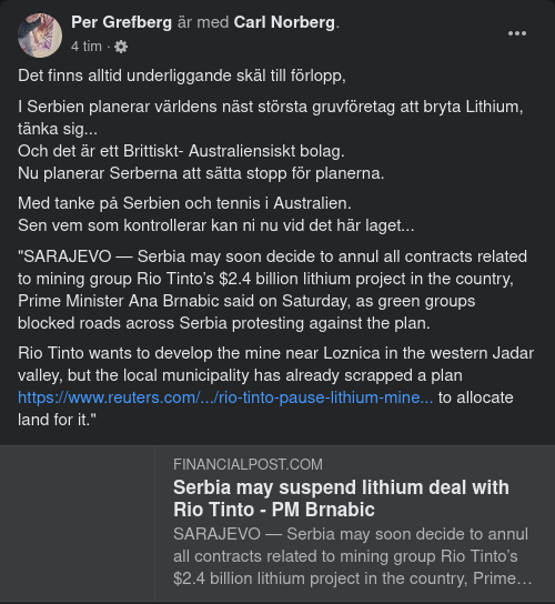 https://financialpost.com/pmn/business-pmn/serbia-may-suspend-lithium-deal-with-rio-tinto-pm-brnabic?fbclid=IwAR3PsJbE4OpiXTYCt-Y_3ThIRbVXU-T8lcNvDvfYmWo66-4GELC4kxoYZUg