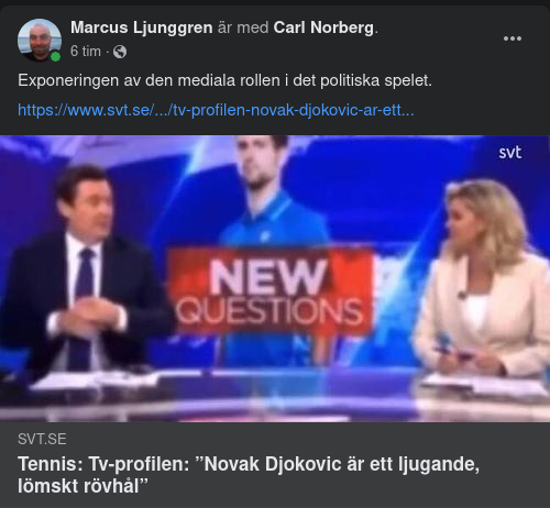 Även bland australiensiska journalister är känslorna starka. Det syntes inte minst på kanalen Channel 7. Under tisdagen spreds nämligen ett klipp som visar när deras programledare Mike Amor och Rebecca Maddern talar negativt om Djokovic i studion. Problemet? Deras snack läckte ut och har fått stor spridning på internet.