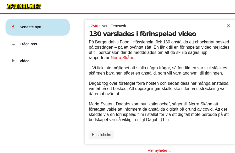 https://live.aftonbladet.se/supernytt/news/130-varslades-i-foerinspelad-video.TM2wqH_4S?fbclid=IwAR2bO9mJhAJnpsCPdTi7cHBbyxlaDuriAT_oEWO-SIDVEyIdVR1wtLAoT-c