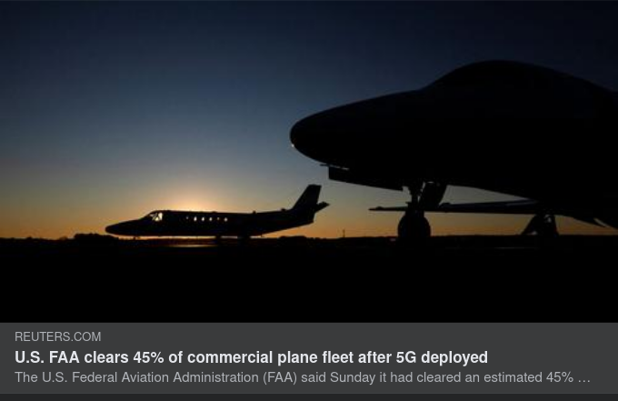 U.S. FAA clears 45% of commercial plane fleet after 5G deploy.