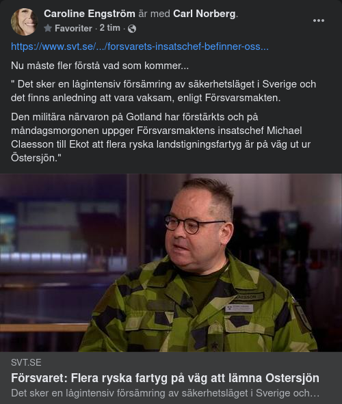På frågan om hur detta ska tolkas säger Claesson att det är något man utgått ifrån från början och att det inte är något onormalt att Ryssland som strandägarstat rör sig ut och in i Östersjön med fartyg och andra typer av militära resurser.
