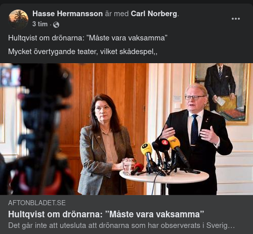 Samtidigt kan inte försvarsministern utesluta att drönarna kommer från främmande makt.