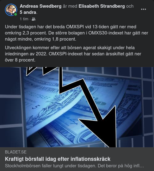 Utvecklingen kommer efter att börsen agerat skakigt under hela inledningen av 2022. OMXSPI-indexet har sedan årsskiftet gått ner över 8 procent.