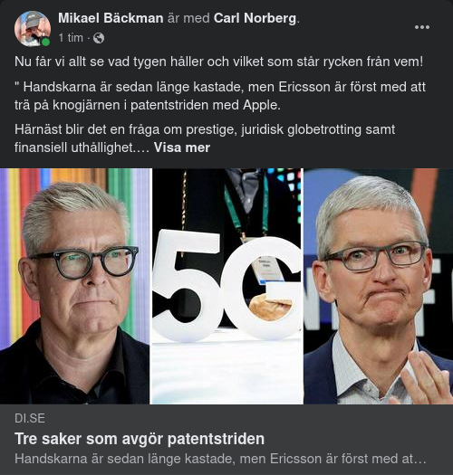 På tisdagen offentliggjordes de två stämningar som Ericsson lämnat in mot Apple den 17 januari: Intrång i totalt tolv 5g-patent.