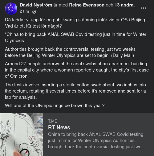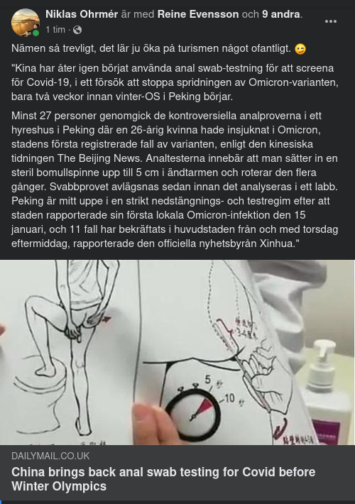https://www.dailymail.co.uk/news/article-10426431/China-brings-anal-swab-testing-Covid-two-weeks-Winter-Olympics-begin.html?fbclid=IwAR2kz36nqNq0BfvB65LgCvbkAdxKPKkLUpd1anT2sWwf9uYiGNMZ0ftI6b8