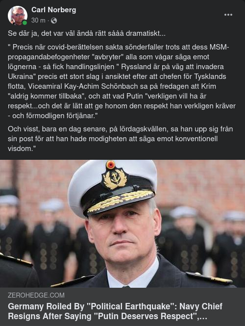 https://www.zerohedge.com/markets/germany-roiled-political-earthquake-navy-chief-resigns-after-saying-putin-deserves-respect?fbclid=IwAR33f0vLDMZpSl05TSEStkwnUEDKlluAN6gP9lN6W1qp8rxu6MyZJod7fXI