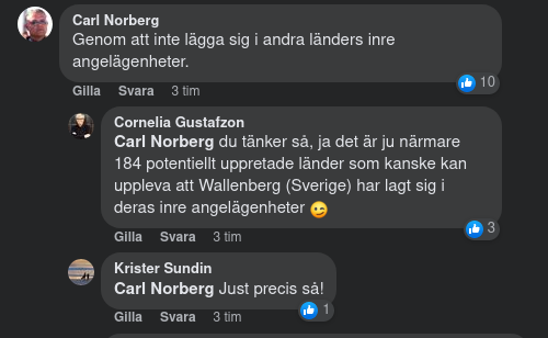 Allt är dock inte nattsvart. David Henriksson på Nordea Fonder, som i kartläggningen skiljer sig från SEB och Handelsbanken, konstaterar i Affärsvärldens kartläggning: ”Det är viktigt att komma ihåg att enligt FN:s principer har länder rätt till självförsvar vilket betyder rätt till ett försvar”. Precis så är det. Se där, ett hållbart förhållningssätt till vår försvarsindustri som fler fondbolag borde ta efter.
