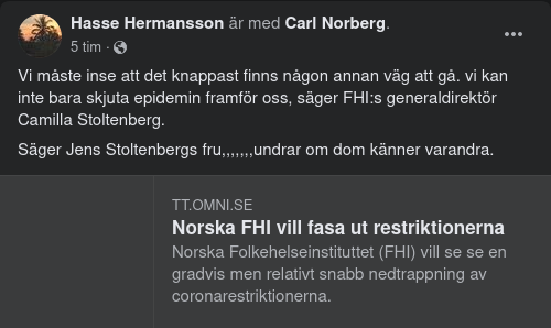 – Ju längre vi behåller restriktionerna desto längre varar pandemin säger Camilla Stoltenberg.