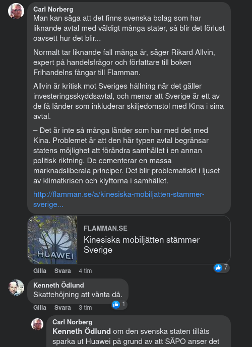 Nu går alltså Huawei vidare med sina tidigare hot om att stämma den svenska staten, eftersom bolaget anser att Sverige bryter mot det investeringsskyddsavtal landet har med Kina, avtal som regleras av ICSID.