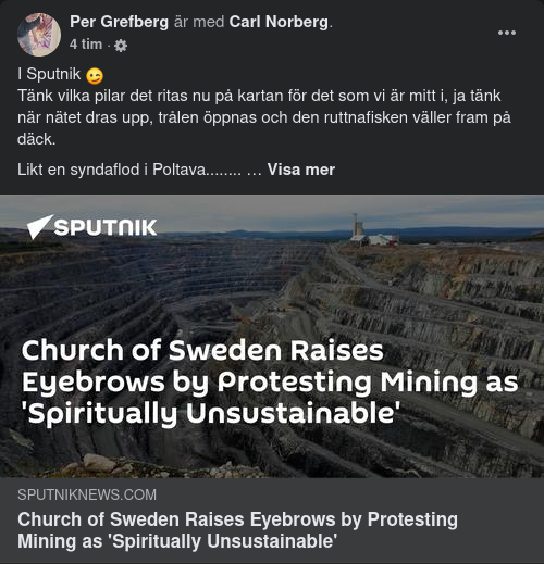 "Svenska kyrkan höjer på ögonbrynen genom att protestera mot gruvdrift som "andligt ohållbar"