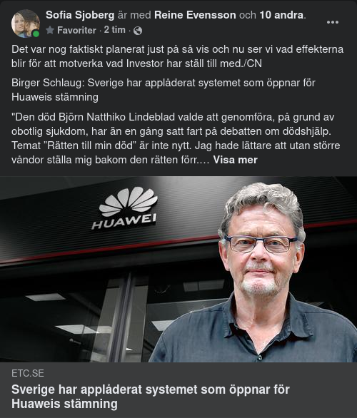 Lustigt nog kom jag att tänka på detta när Huawei meddelade att de drar Sverige inför rätta i en internationell skiljedomstol därför att företaget portats från det svenska 5G-nätet, förlorat tänkt vinst och fått dåligt rykte... Bolaget kräver minst 5,2 miljarder kronor i ersättning. Men det kan enligt experter landa på uppåt 30 miljarder. Det avgörs av en privat skiljedomstol som är allt annat än transparent.
