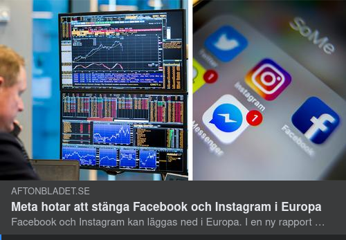 Meta hotar att stänga Facebook och Instagram i Europa. Facebook och Instagram kan läggas ned i Europa. I en ny rapport kräver ägarbolaget Meta att få flytta användarnas data till USA. Men det kommer nog inte att hända, menar it- och medierättsjuristen Daniel Westman. – Jag tror inte det. Man försöker framställa det som att ”antingen får vi fortsätta med det vi gör på exakt samma sätt, annars stänger vi ner helt”, säger han. En stor del av Metas intäkter kommer från att samla in användardata och sälja den till annonsörer för riktad reklam. Men EU:s lagar hindrar företaget från att flytta, spara och hantera data från sina europeiska användare på servrar i USA. Nu hotar Meta med att lägga ner Facebook och Instagram. ”Om inte ett nytt ramverk för transatlantisk dataöverföring tas fram för dataöverföringar mellan Europa och USA kommer vi troligen inte att kunna erbjuda våra mest betydande produkter”, skriver Meta i den nya verksamhetsrapporten. Vem får datan i USA Facebook och andra techjättar har sina huvudkontor på Irland. Det är snart fyra år sedan GDPR-lagarna infördes och landets dataskyddsmyndighet utreder hur Metas överföring av personuppgifter från EU till USA går till. Bland annat finns frågan om vem som får tillgång till européers uppgifter när datan lagras på servrar i USA. Till exempel skulle amerikanska säkerhetsmyndigheter kunna få det. – De har ju varit pressade i Europa under lång tid. Meta kanske också försöker sätta press på den amerikanska regeringen. De kanske måste förändra sin inställning till NSA och övervakning för att EU ska gå med på överföring till tredje land, säger Daniel Westman, it- och medierättsjurist. Meta störtrasade nyligen på börsen. För första gången någonsin tappar Facebook användare. Apple har infört en funktion som gör att Iphone-användare kan välja om de vill bli spårade eller inte. Det kan kosta Meta 10 miljarder dollar, enligt New York Times. Men att Facebook och Instagram skulle stängas ner i Europa tror inte Daniel Westman är särskilt troligt. – Det är i sådana fall ett val de gör. Det har funnits diskussioner om molntjänster och där har man börjat se lösningar där datan kan stanna i EU. Är EU för hårda och måna om persondata och integritet? – Det är väl i grunden en politisk fråga. Men jag tycker inte det. Att man kör lite hårdare med de som bygger sina affärsmodeller på den här typen av datainsamling tror jag har ganska stort stöd. https://www.aftonbladet.se/nyheter/a/7d1pxB/meta-kan-stanga-facebook-och-instagram-i-europa-pa-grund-av-gdpr?fbclid=IwAR2t6oPBC-KsneBZ_H9rxL_ACAEt_OyMtRJmPqZM52V9L8za2vr1rXa-qZ8