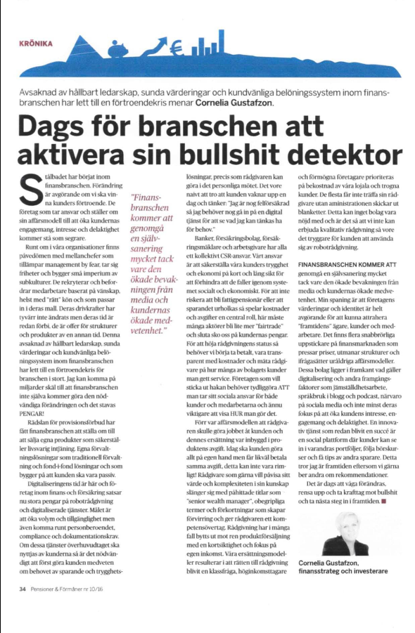 Denna krönika skrev jag 2016 i den Bonnierägda tidningen Pensioner & Förmåner. Det var Bonnier som kontaktade mig och bad mig skriva den efter att ha läst ett av mina blogginlägg.