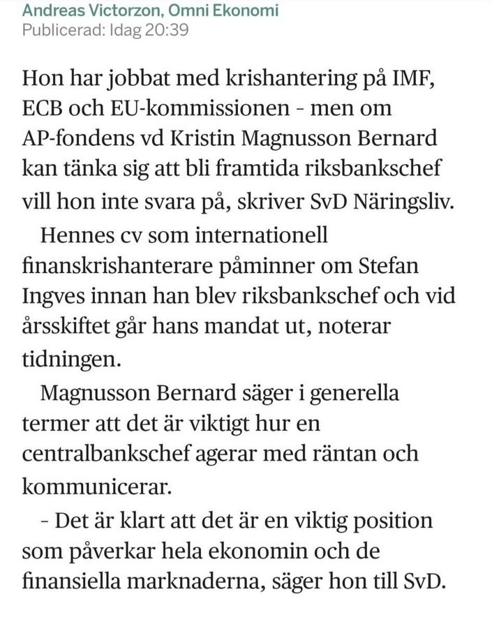 Frågeduckande Om Riksbankschefsjobb