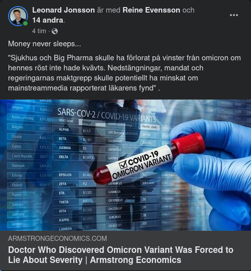 https://www.armstrongeconomics.com/world-news/corruption/doctor-who-discovered-omicron-variant-was-forced-to-lie-about-severity/?fbclid=IwAR3U0CUZMPLPKQ5yB3YNakpQ2Zs1xxBG20BPtQws4SDGUU7hfVBsV2QMMzw