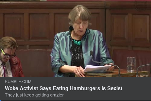 https://rumble.com/vuobzv-woke-activist-says-eating-hamburgers-is-sexist.html?mref=22lbp&mc=56yab&fbclid=IwAR1a9b-qere6DHztdd-olheQBtJh35SEZjOYn_wcLkczT3iY6y3KQX5W0Qg