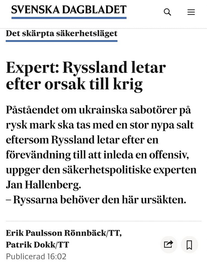 https://www.svd.se/expert-ryssland-letar-efter-orsak-till-krig?fbclid=IwAR1SapUjeqr2PDpAZUj0z5Fa-_fZNE-wckPd7D7SMdM49ogB3sTyIJ2s_Vo