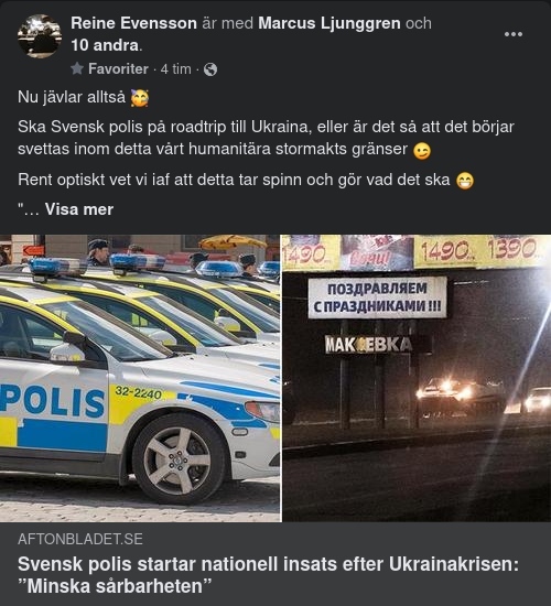 "Svensk polis startar nationell insats efter Ukrainakrisen: ”Minska sårbarheten”Ordern: Tanka alla polisbilar.