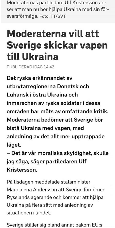 Moralisk Kristersson Vill Skicka Vapen Till Ukraina
