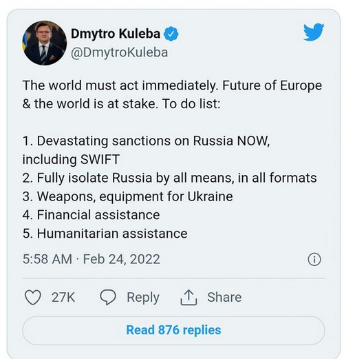Ja. Nog fan är det dags att på global skala - exponera - att det bara funnits ett banksystem. Viktigare än allt annat till och med, enligt Ukrainas utrikesminister.