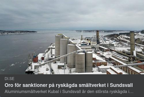 https://www.di.se/nyheter/oro-for-sanktioner-pa-ryskagda-smaltverket-i-sundsvall/?fbclid=IwAR1eY1OtPSvf-vuUzOzUKT6r19MjtIvbNbR4V4URORwT6Fs8LzVVeCf7lOQ